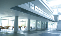 儀式や芸術活動に使う多目的ホールをはじめ、1フロア全て情報関連のメディアラウンジなども充実。全教室冷暖房完備。 |